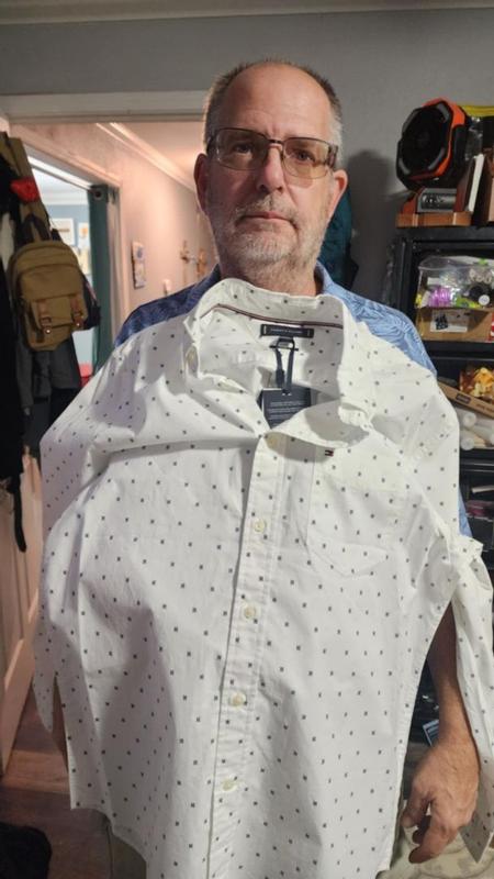 The Tommy Hilfiger flex poplin shirt is soft, comfortable, and has a great feel to it. The button-down design is easy to use, and the stretch fabric gives it a nicer, more flexible fit. Unfortunately, the one I received was tighter than expected—either I ordered the wrong size or the wrong size was sent. That said, the small print design is beautiful, and I absolutely love the overall look. I’m excited to reorder this shirt in the correct size, especially to wear on my upcoming cruises.