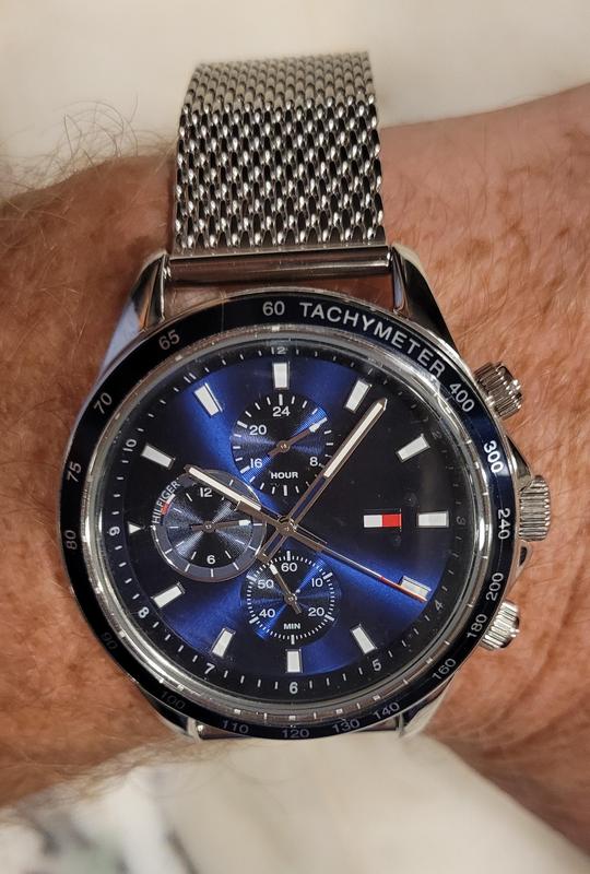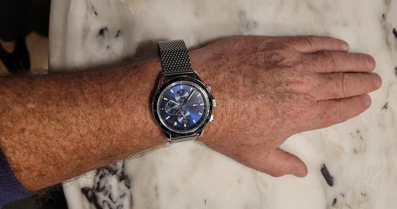 I got this for my husband as a surprise! No special occasion...just because. I'm happy to report that he loves it. The navy against the silver is sharp and he loves to wear it to church or out to dinner. He has large wrists, but it fit him perfectly. He is now interested in more Tommy Hilfiger items. Every girl crazy about a sharp dressed man!