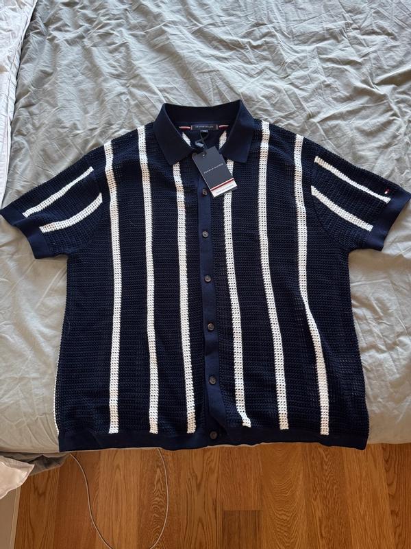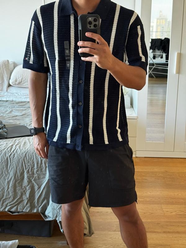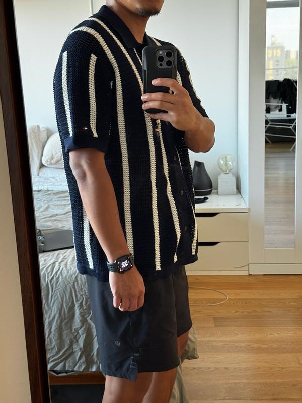 The Vertical Stripe Open Knit Shirt in dark blue and white will likely be one of my favorite pieces for vacation and laid-back weekends. The quality really stands out as it feels well-made, with a soft, comfortable fabric that is a pleasure to wear. I noticed that it runs a little large, which actually works in its favor for a loose, relaxed fit, especially when you want something easy and breathable in warmer weather. The material has a nice stretch that makes it even more comfortable, whether attending a gathering by the pool or just strolling on the beach. Because of the open knit design, I plan to layer it over a plain white t-shirt, which looks fresh and helps keep things stylish but casual. What I really like is how versatile it is, since it pairs just as well with shorts as it does with lightweight pants, and it works with almost any color. Overall, this shirt fits perfectly with a vacation or resort vibe and feels like something I will keep reaching for all season.