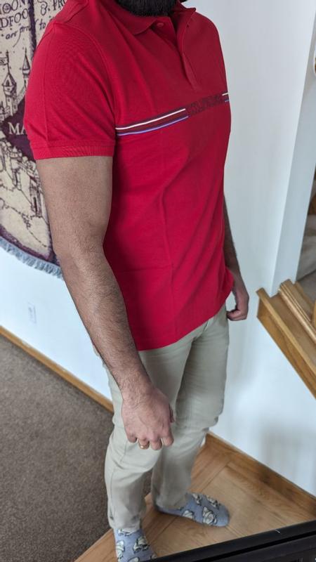 Men's Striped Chest Short Sleeve Polo Shirt