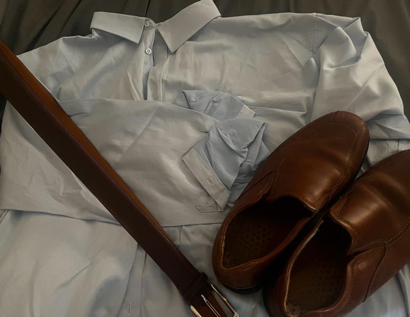 This is a classic button up shirt. The color is great. It feels nice and isn’t too thick. I wore it to a wedding with dark pants and brown shoes and belt, by the reception, the sleeves were rolled up of course. My wife complimented me in it. Definitely recommend.