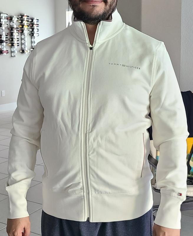 This track jacket is very comfortable and stylish. My son wears it to work while in the cold/freezer section stocking. It's just the right thickness to keep him warmed up. It has nice durable material and washes well.