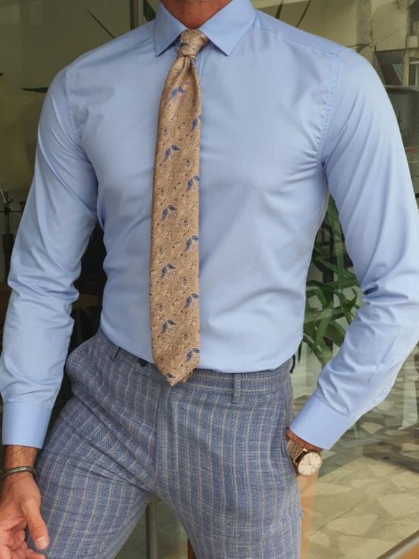 Standard dress shirt. Has a comfortable fabric and slim fit. Has high quality stitching and rich color. Sturdy and fitted reinforced collar. Great that it’s convenient and made to be machine washed and dry.