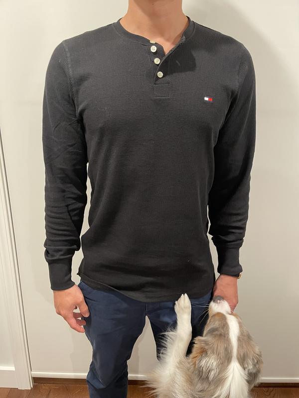 The thermal long sleeve Henley from Tommy Hilfiger has a great fit and is very stylish. It hugs my body and isn't in the way when I'm moving about. I also like the quality. feel, and texture of the material. All in all, this is a great shirt from Tommy Hilfiger and I would definitely recommend it.