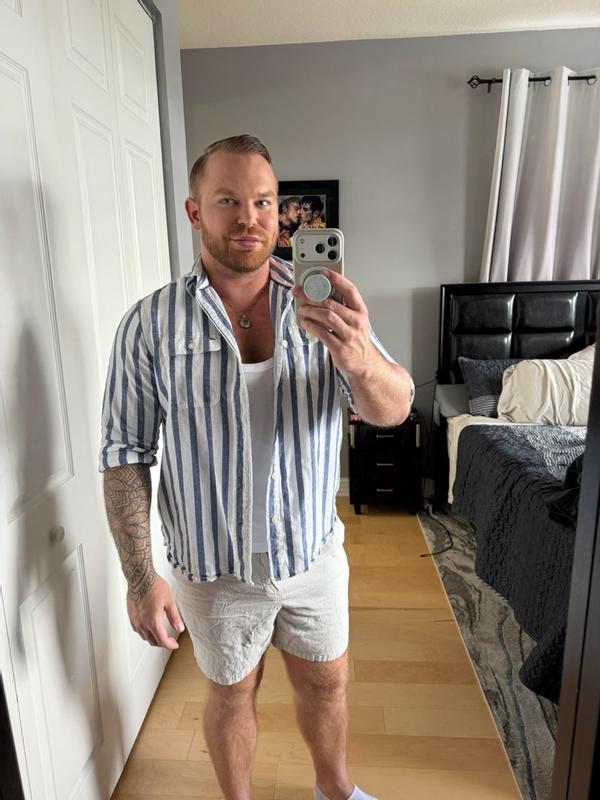 This short is of very great quality. It is soft yet holds structure and the length of the sleeves are perfect whether you wear them down or cuffed. The coloring is beautiful all in all I’m very happy and would look into other shirts from Tommy after being able to try this.