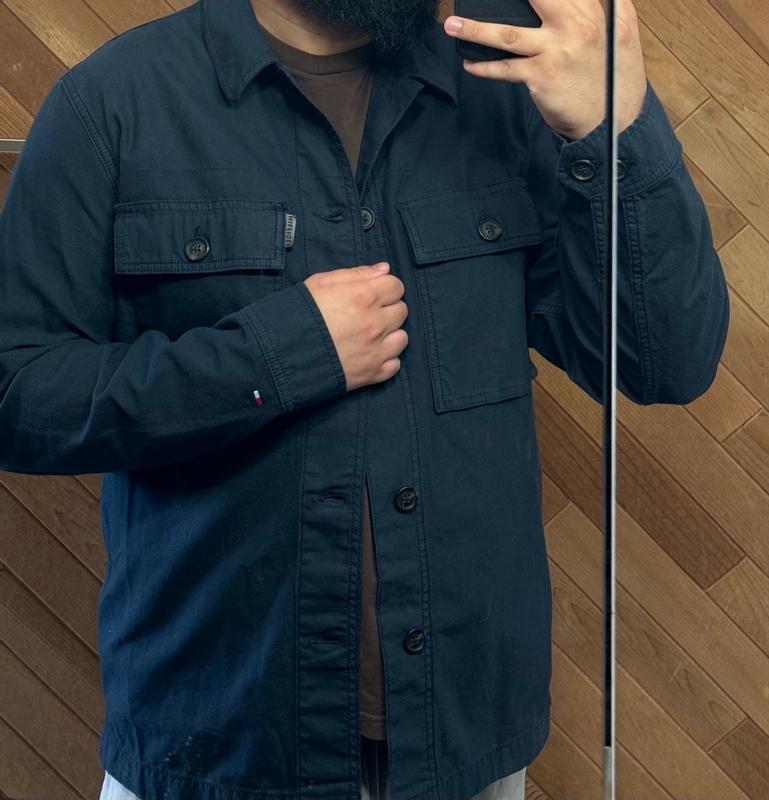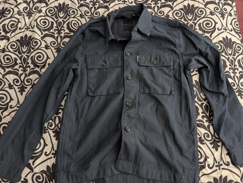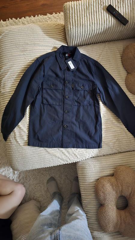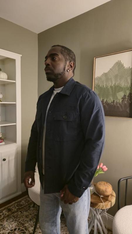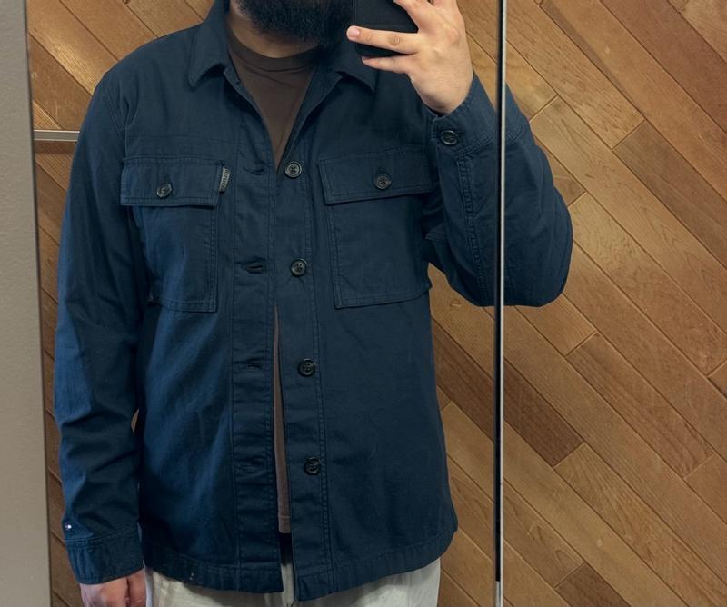 The Tommy Hilfiger utility shirt jacket is a perfect addition to any wardrobe. It's great for layering and fits perfectly for multiple occasions. It's not heavy weight which is great for warmer weather and having the large buttons help with putting it on or taking it off