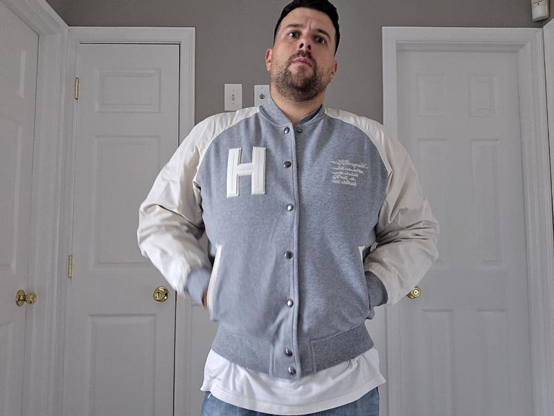I got this Tommy Hilfiger mix media varsity bomber for my son. He really likes this one, it keeps him warm and it's very comfortable! The material quality is fantastic! It is extremely durable and versatile. This will go great paired with just about anything. I got this in the size medium and it fits true to size. It has two nice size pockets to keep things in. This is a terrific bomber if you are wanting one for going out, or just everyday wear!