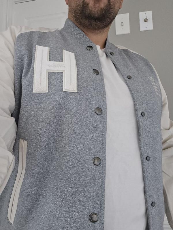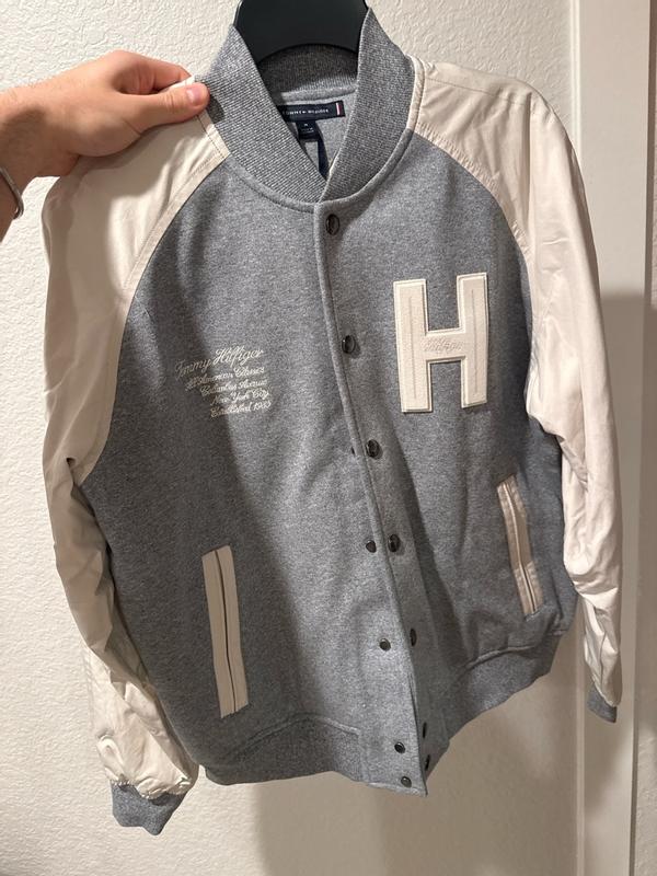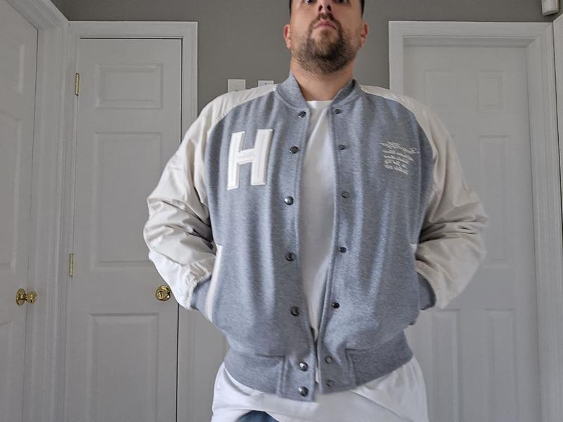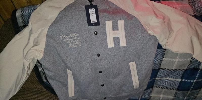 The Tommy Hilfiger Varsity Bomber is an absolute standout piece! The design perfectly balances a sporty, collegiate look with the clean, timeless style Tommy Hilfiger is known for. The grey body paired with cream sleeves gives it a sleek, versatile appearance that works with just about any outfit. The quality is excellent. Soft, durable fabric for the body, and sturdy sleeves that keep their shape while adding a premium feel. The detailing is spot-on, from the embroidered “H” patch to the neatly finished pockets and buttons. It’s comfortable enough for everyday wear but stylish enough to make a statement. Whether you’re layering it over a hoodie for a casual day out or pairing it with jeans for a smart-casual look, this jacket always delivers. Easily one of my favorite wardrobe pieces. Classic, comfortable, and effortlessly cool. Highly recommend this to anyone looking for a stylish, high-quality varsity jacket with that signature Tommy Hilfiger flair.