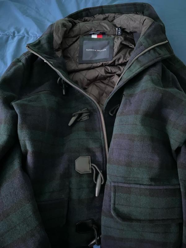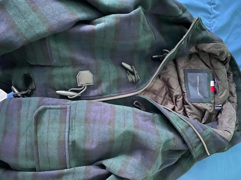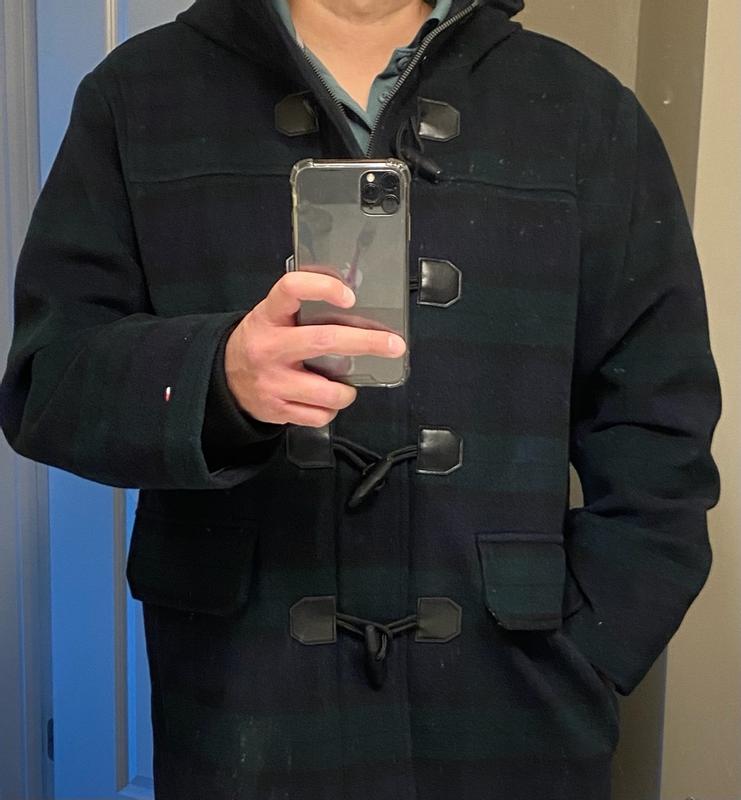 This Tommy Hilfiger Plaid Wool Blend toggle coat is stylish and comfortable. It has four front pockets and two inner pockets, enough to carry whatever you need. It fits great and length is about mid thigh, which is great on very cold days. This isn’t a work jacket, but is durable enough to go on a nice ice skate outside while looking great. This is a fantastic formal jacket that will last.