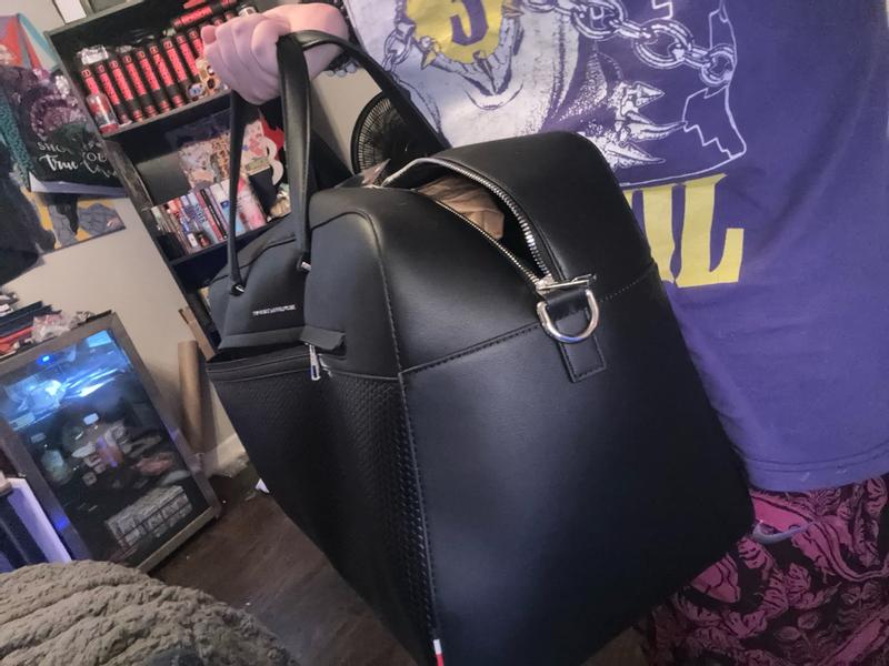 imagine you’re vacationing in the mountains at a ski resort for the weekend. you don’t need to pack a lot but still a fair amount of essentials. interior slot for your laptop, pockets for your beauty essentials, plenty of space for clothes, maybe a jacket, boots, etc. suitcase would be too much, backpack might not be enough & neither can be used as an accessory to your outfit….but this bag can. High quality stitching, minimalistic logo & detailing. Definitely excited to travel with this.