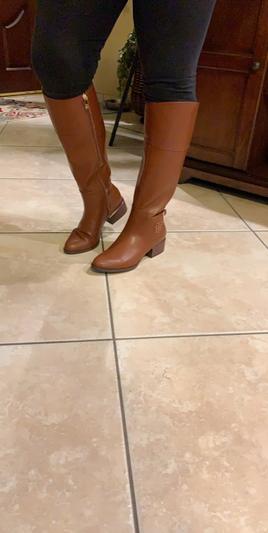 I purchased and returned 3 pairs of boots this winter before finding this great pair in the store. My normal size felt a bit tight, so I ordered half a size larger than I normally wear to accommodate thicker socks. I like how the shaft doesn't bunch up around the ankle and it's not too tight or too loose around my calf. I find them comfortable to wear all day at work. They are easy to walk in as well since they since they have a textured sole to prevent slipping. They work great with legging and skinny jeans or with a casual dress since it has a low heal.