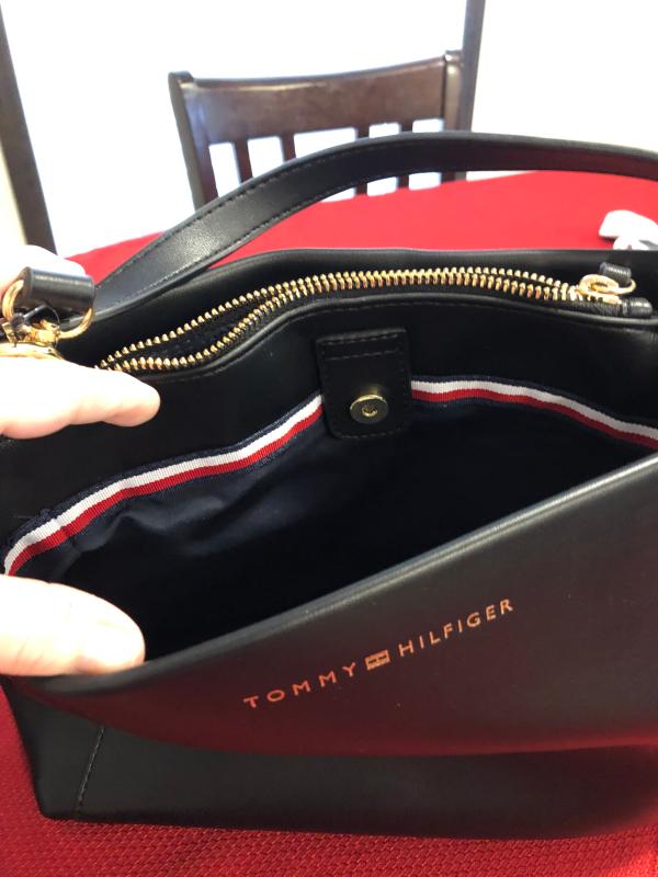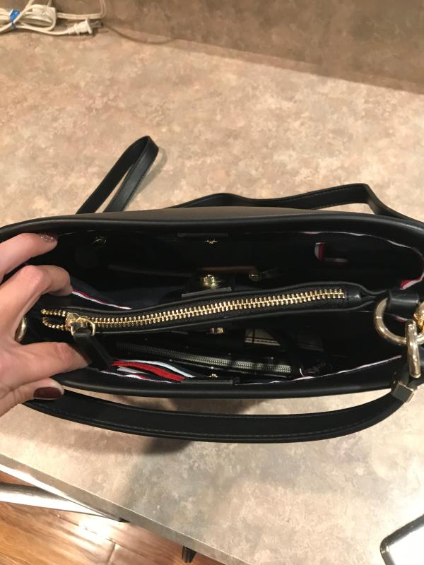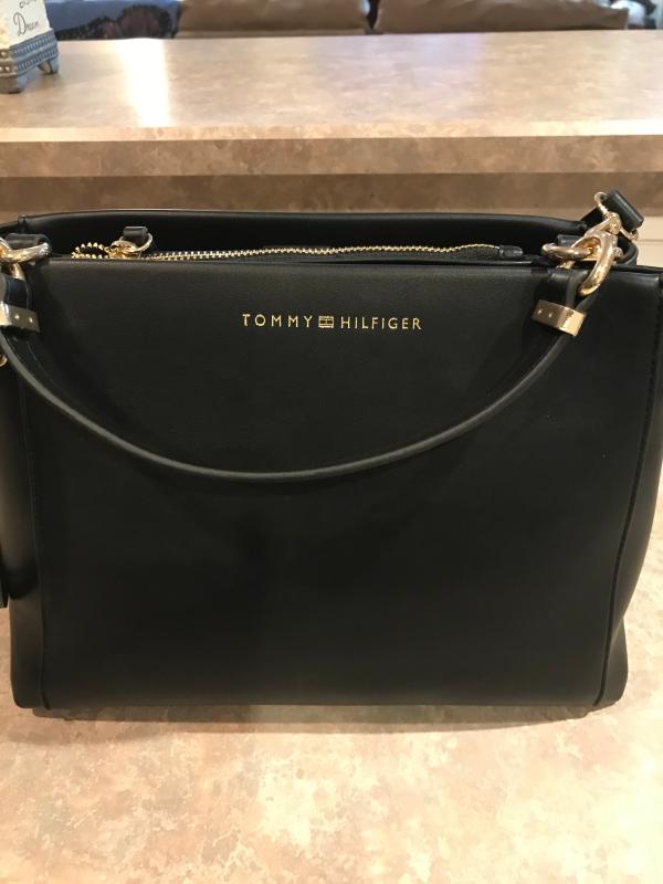 I love my Tommy Hilfiger Penelope Satchel purse. I have the purse in black which goes with anything. The purse can be carried as a satchel or you can use the additional straps to carry it on your shoulder. It had plenty of room inside to carry all my necessities even my cell phone. It seems to be real durable.