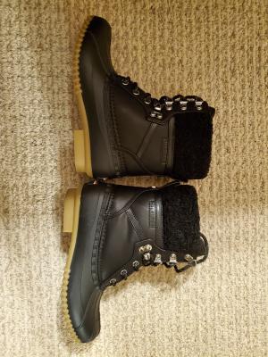 I was very excited to get my first ever duck boots! Unfortunately, when I wore them and started walking found that they make a very annoying SOUND! I didn't think the "duck" was literal. Very annoying and embarrassing. If I could return them I would. Tommy you failed.