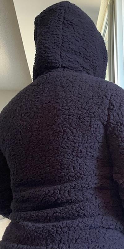 This was really unexpected. The photos don't really capture how fuzzy this jacket is - it will definitely keep you warm. The quality is great - the material is soft and beautiful. The hood is also a great addition.