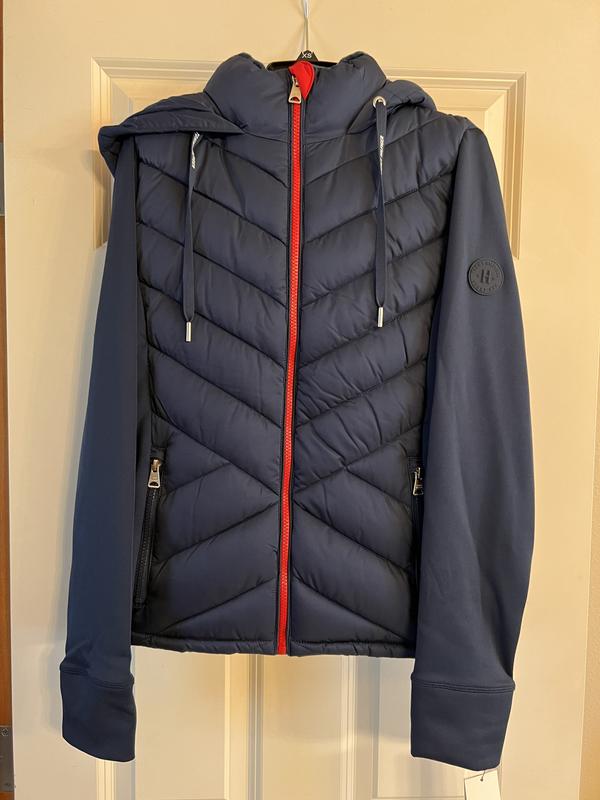 This Tommy Hilfiger - Hybrid outerwear jacket with silicone logo patch is really beautiful! This Tommy Hilfiger - Hybrid outerwear jacket with silicone logo patch keeps my daughter dry and warm on those chilly cold days and its great to wear when it rains as well. SHe loves that the zipper is easy to zip and that this jacket is very stylish as well. I highly recommend this product!
