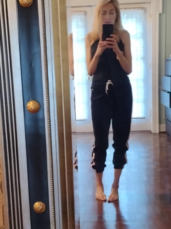 These are very cute and sporty! I wanted them a little oversized so I sized up. They are super comfy in the waist and fit just like I wanted. The only thing I didn’t love is the stripes down the side. Just a bit to much. Because of that they will definitely be around the house joggers.