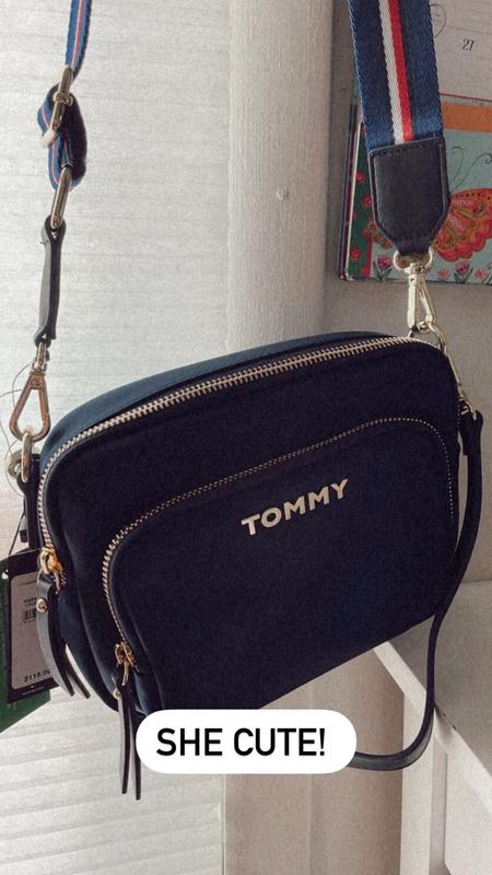 This Virginia xbdoy bag from Tommy Hilfiger is very nice. I love that it is small. It fits over the shoulder. It comes with a small strap and long strap. I love the navy blue color. It matches great with my jeans. Overall , it is both functional and stylish.