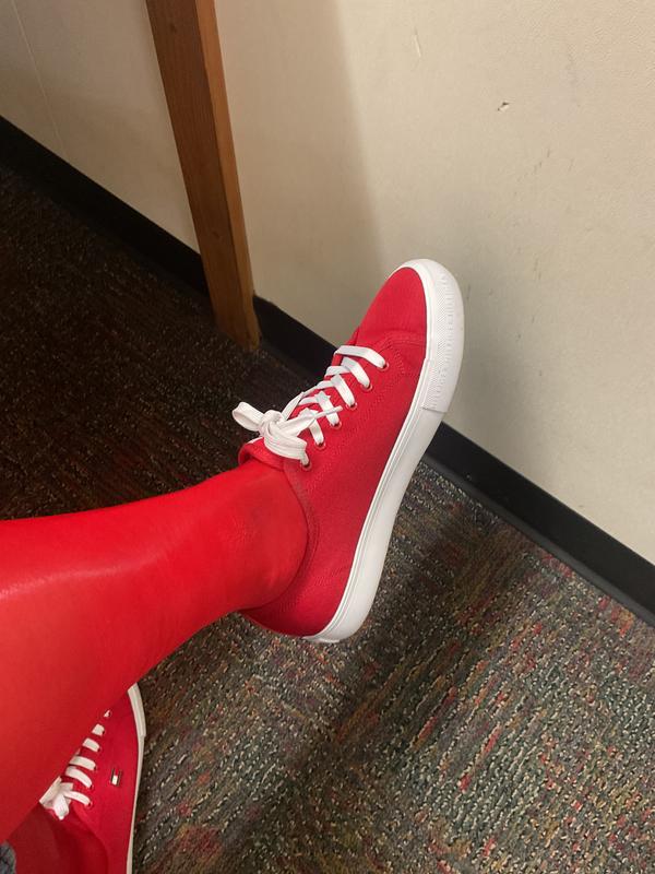 I had been searching for the perfect pair of red sneakers to wear during #Holidays2025 for months! With less than a week to go before Christmas, I found them! They are perfect! White laces + a white sole! A tight cloth weave! And a color that announces “I’m here!” I wear them with joy! And, red tights! Thank you TH, and Macy’s!