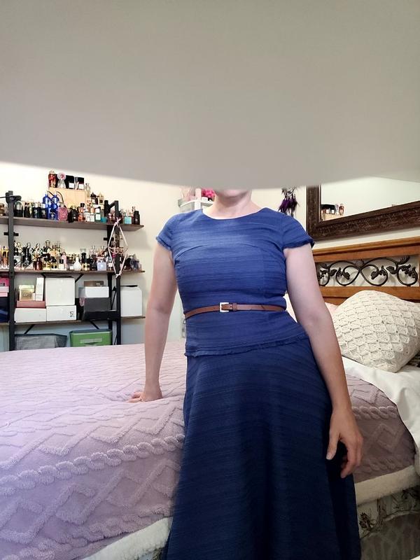 This dress was of a satisfactory quality. The material was suitable and not overly constricting, providing adequate abdominal support. The length was appropriate, and the color was aesthetically pleasing. The belt complemented the dress, enhancing its overall elegance. It would be suitable for formal events or professional settings.