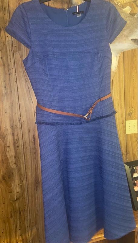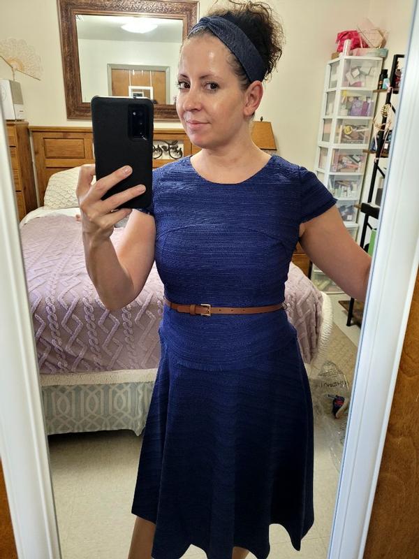 Women's Belted Cap-Sleeve Fit & Flare Dress