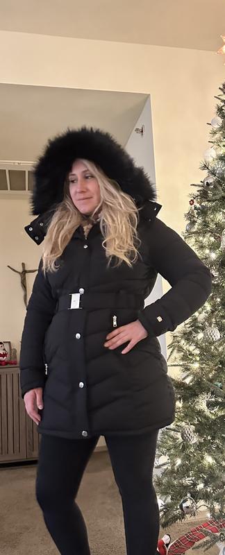 Women's Belted Faux-Fur-Trim Hooded Puffer Coat, Created for Macy's