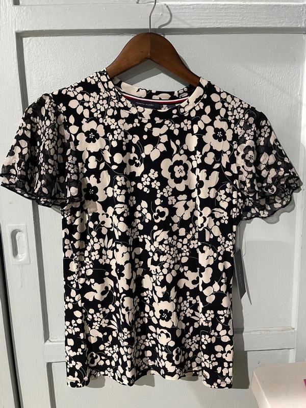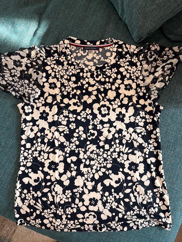 I love this Tommy Hilfiger blouse! It is very comfortable and stylish. I took it on a cruise, and it did not wrinkle at all. It washed up well, too. I love maintenance-free clothes, especially for travel!