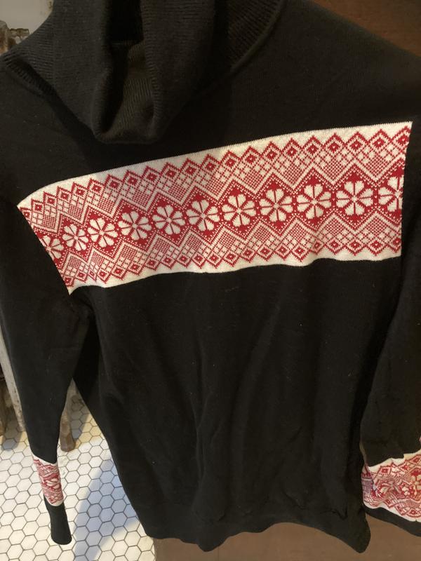 Great sweater! I wore this for a Christmas Eve family dinner it was perfect, the weight of the turtleneck sweater was on the lighter side not heavy at all very comfy not itchy since it is a cotton fabric, fits tts. I would def recommend.