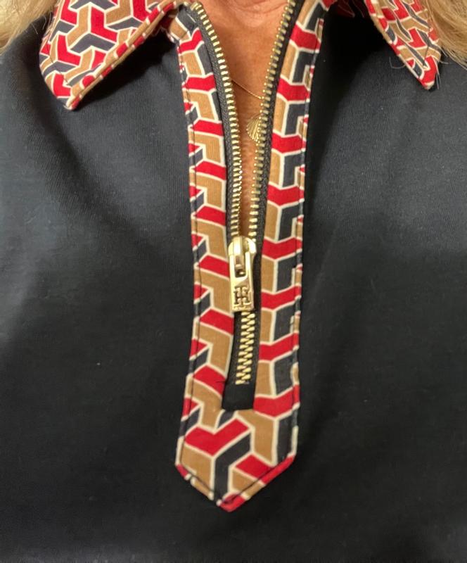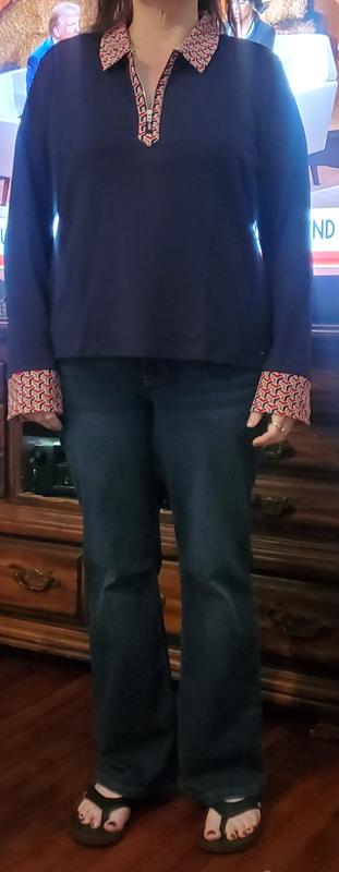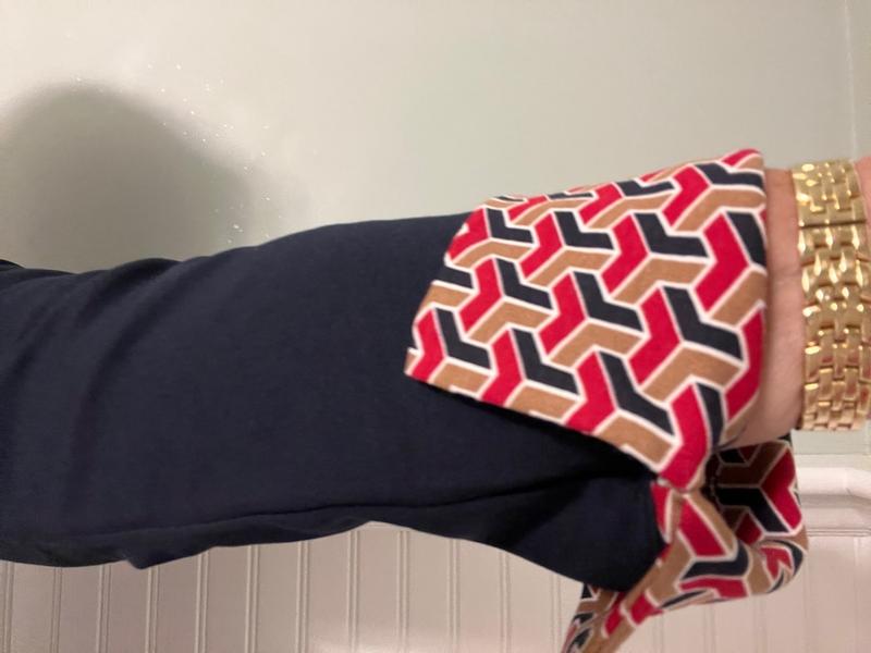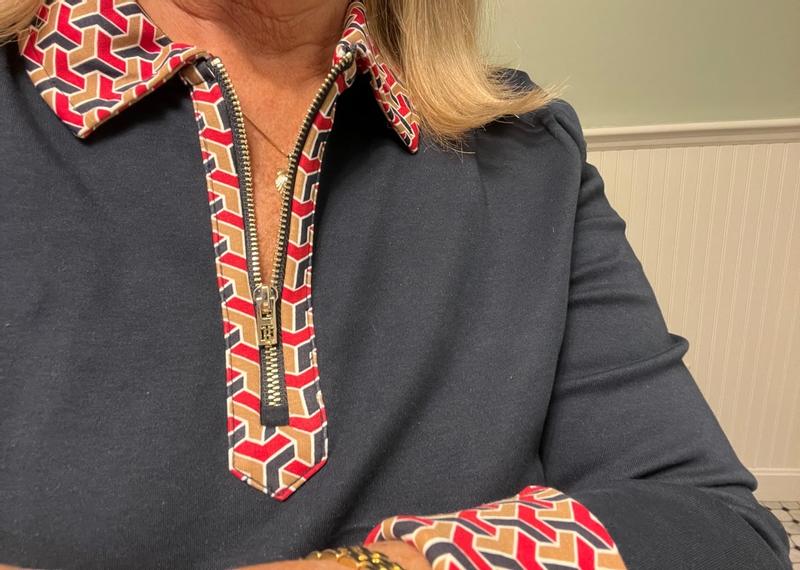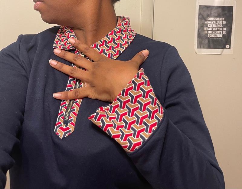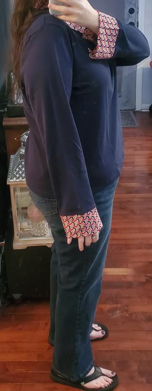 I am absolutely in love with the cotton comfort. The pattern on the collar and sleeves makes it stand out with a pop of color and shape. It is machine washable and fits great. Definitely great quality and highly recommend