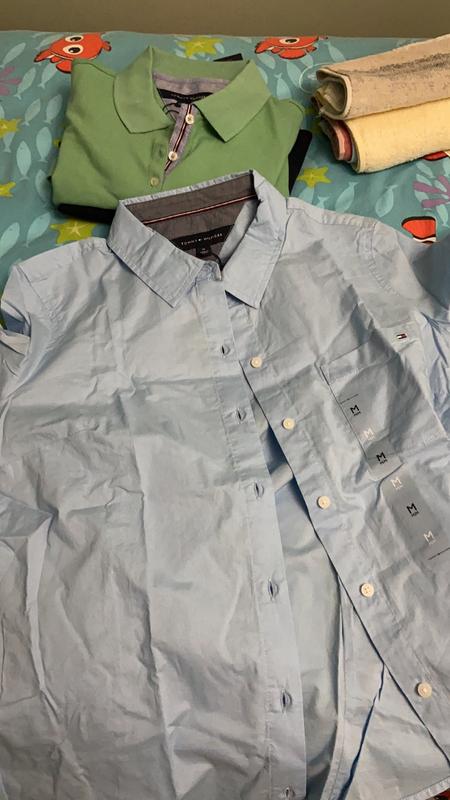 I bought this shirt for me, in yellow. Fit nice , comfortable. The only thing surprise me about the fabric: is ‘Dacron ‘ !!! I expect pure linen , as usually Tommy Hilfiger carry before . Anyway I keep it .