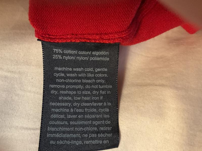 This sweater is not 100% cotton - as described on the Macy's website. It is cotton and nylon. The style, color, and fit are excellent - but I can't wear nylon.