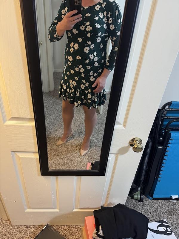 Women's Crewneck Printed Ruffled Hem Dress