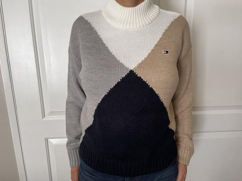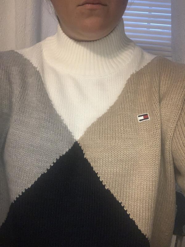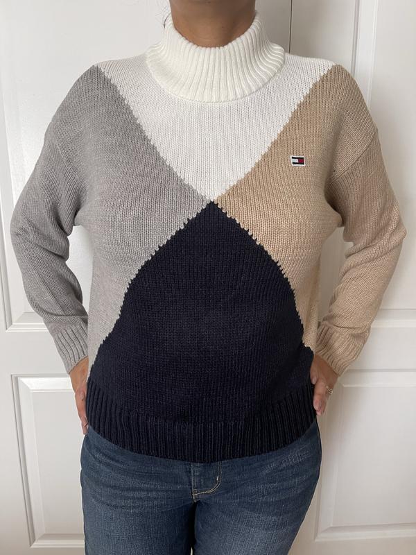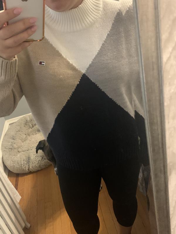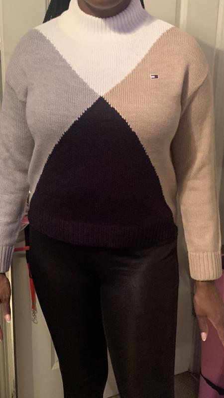 Sweater looks just like picture and better in person. Well made and colors are vibrant. True to sizing.