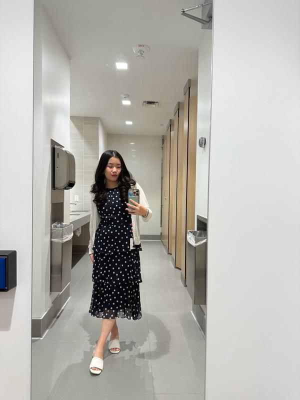 There are dresses you wear, and then there are dresses that leave a lasting impression. This Tommy Hilfiger dot-print tiered maxi is definitely the latter. The chiffon feels so chic, and the dot print is just timeless. Honestly, it's probably one of the best dresses I own. The quality is truly impressive, promising to last, and it's surprisingly comfortable to wear from sunrise to sunset. The fit is incredible, and I feel so elegant and gorgeous wearing it. It was perfect for my evening outdoor date, and the compliments just kept coming!