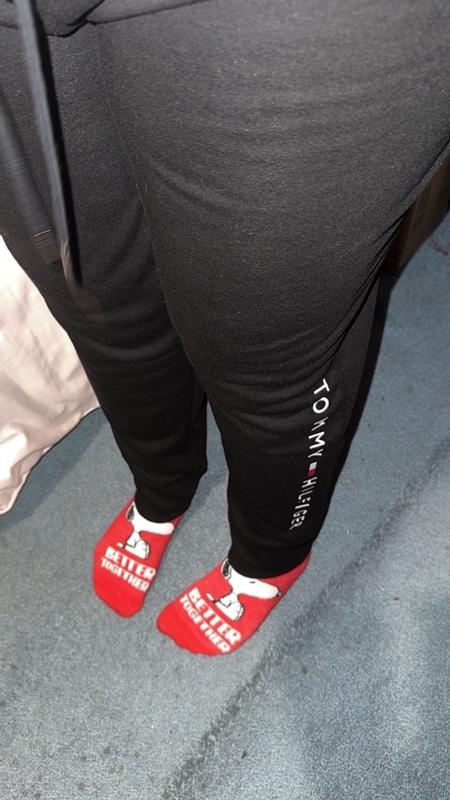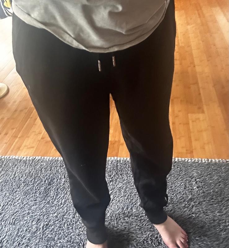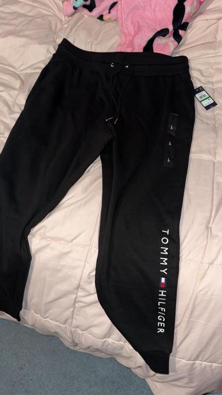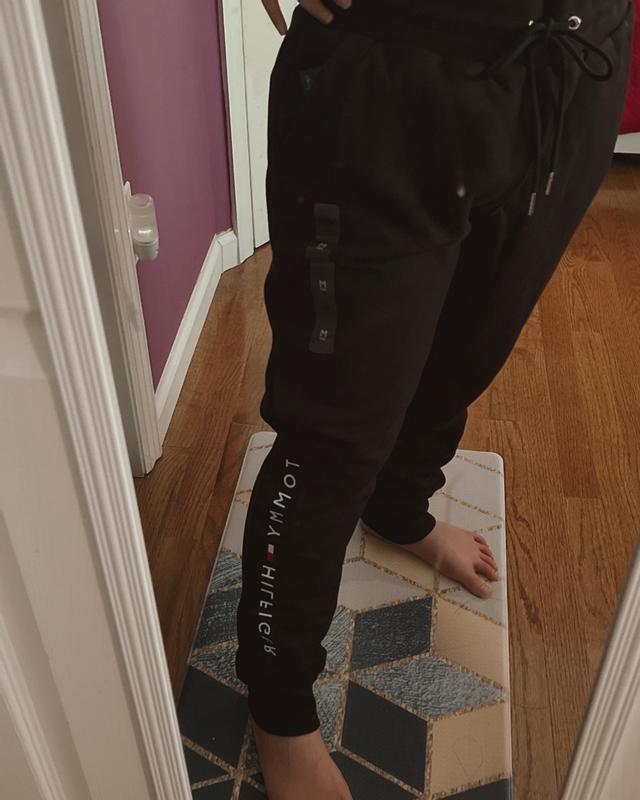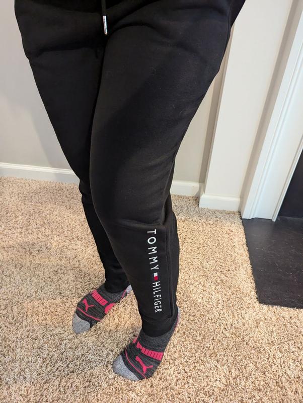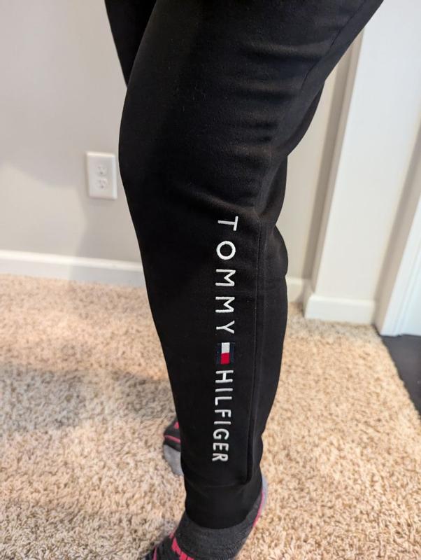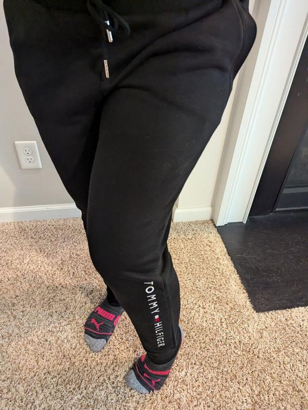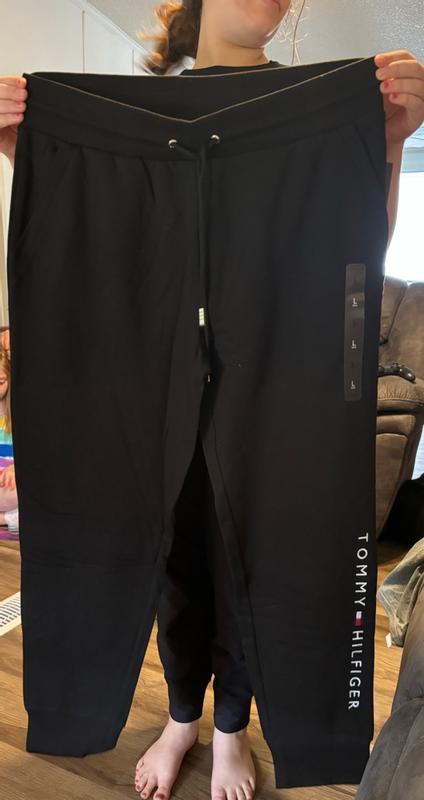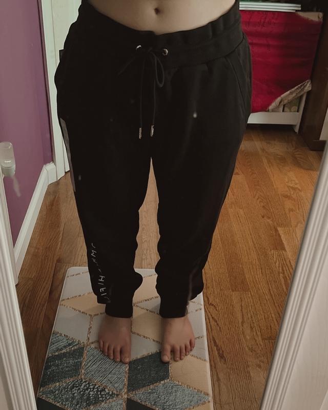 The Tommy Hilfiger women's linear logo jogger in size medium is true to size, the perfect fit for me I'm 5'3 and 130lbs. The joggers are comfortable, soft and perfect for fall and mild Winter weather. The joggers seem durable but have faded considerably over time.