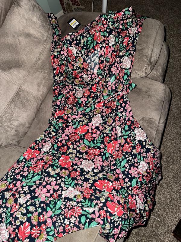 I absolutely love this dress, as soon as I put it on I fell in love! The material is soft and lightweight, perfect for spring/summer! There is a tie in the back that your can tie into a bow, you could have it tie around front or the back side and you can have it tied tight for more of a tight fitted look or you can tie it so it has more of a loose fitted look, which I absolutely love cause some days I don’t want my outfit to be super fitted so you have both options! Tommy Hilfiger is a good brand.