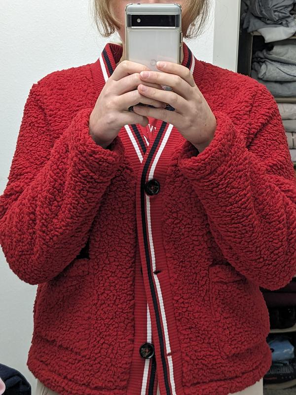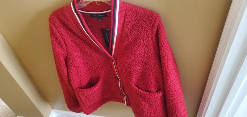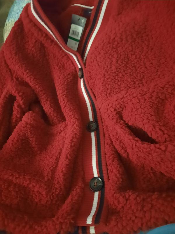 I didn’t receive the Sherpa Cardigan like requested but I did receive a red fleece like material zip up coat from Tommy Hilfiger that’s very nice. It’s cozy and soft, runs a little small but it fits my daughter perfectly and she loves it.