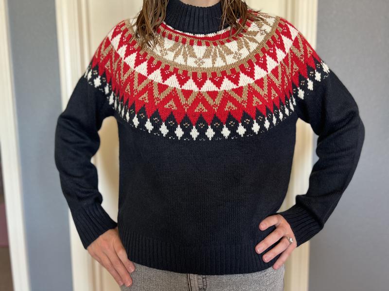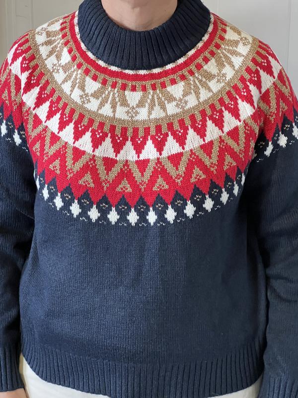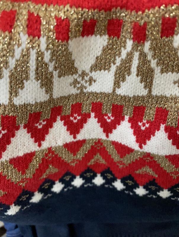 Beautiful sweater. I think especially for winter holidays. Nice material & good fit. I love the colors.
