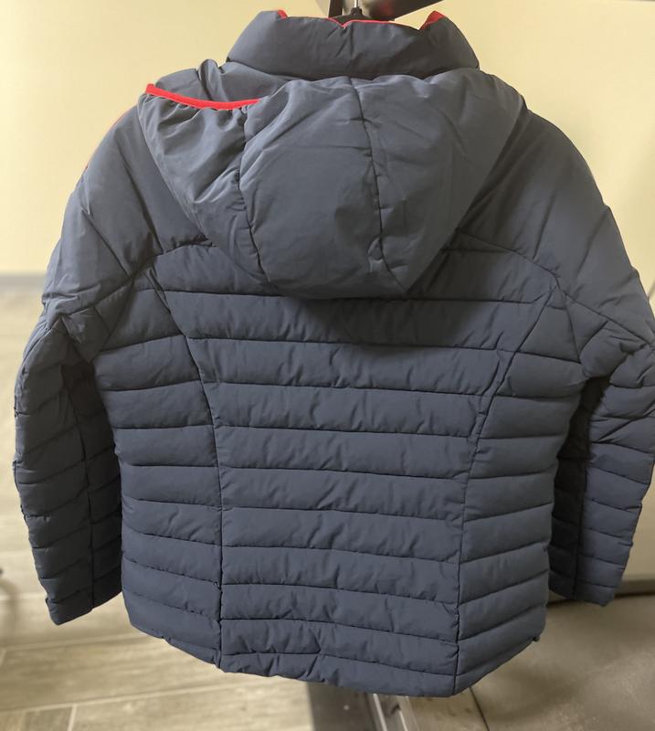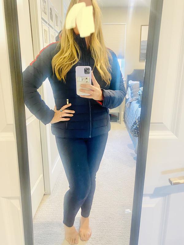 Worn a few times and already have seams and strings that are sticking out in the front. Size runs very big. I got a median but I am swimming in it. I thought it would be a winter sporty looking jacket but it’s very light weight and is very boxy. I thought that it would have a cinched waist, but it does not at all. Not form fitting