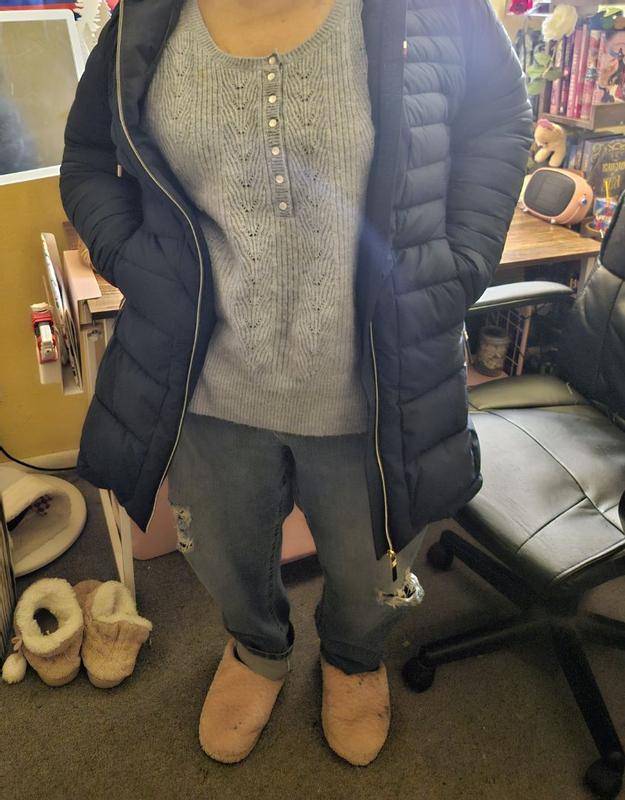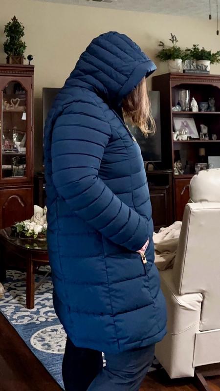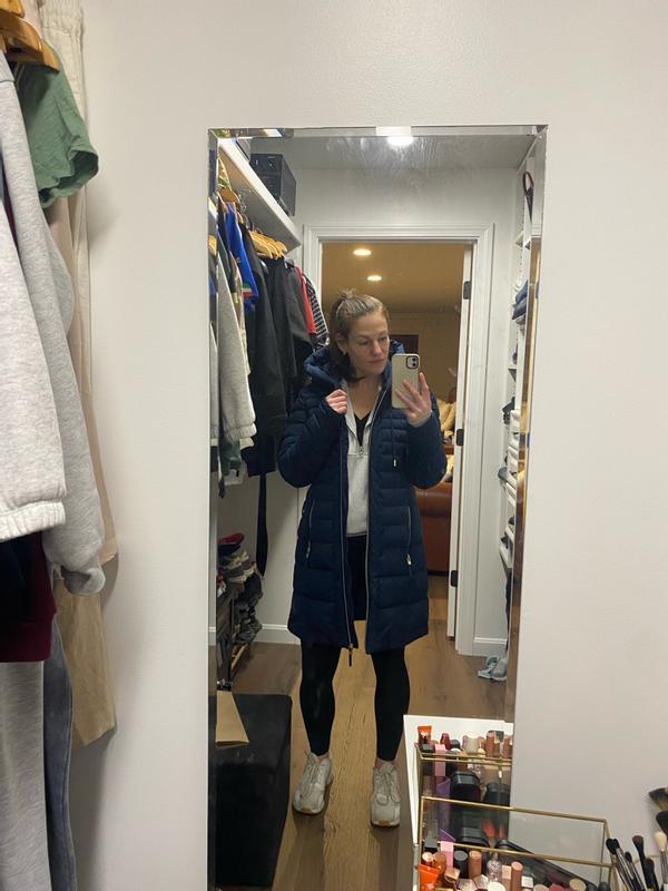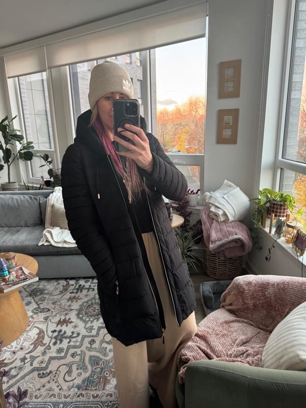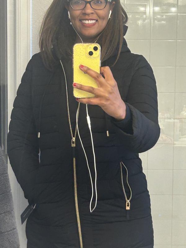 Arrived 10/24/2025 perfectly packaged. Fits perfectly. Don’t mind the hood. Have puffer boots to match. Ready for winter this year. Zips great. ❤️ the style.