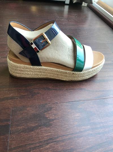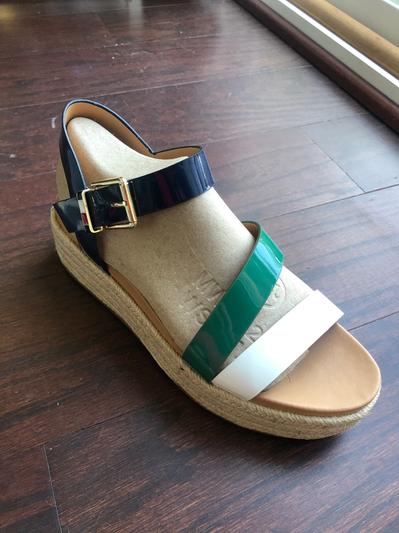 White and green make a great combination. I love these sandals. The color is unique and different.