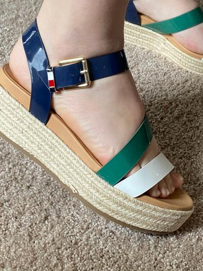 I love theses sandals. I bought this color and an additional sandals with green and blue straps. These went well with and outfit that I purchased for my upcoming trip. ❤️❤️❤️❤️