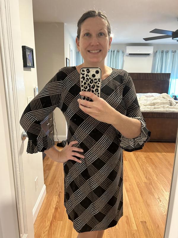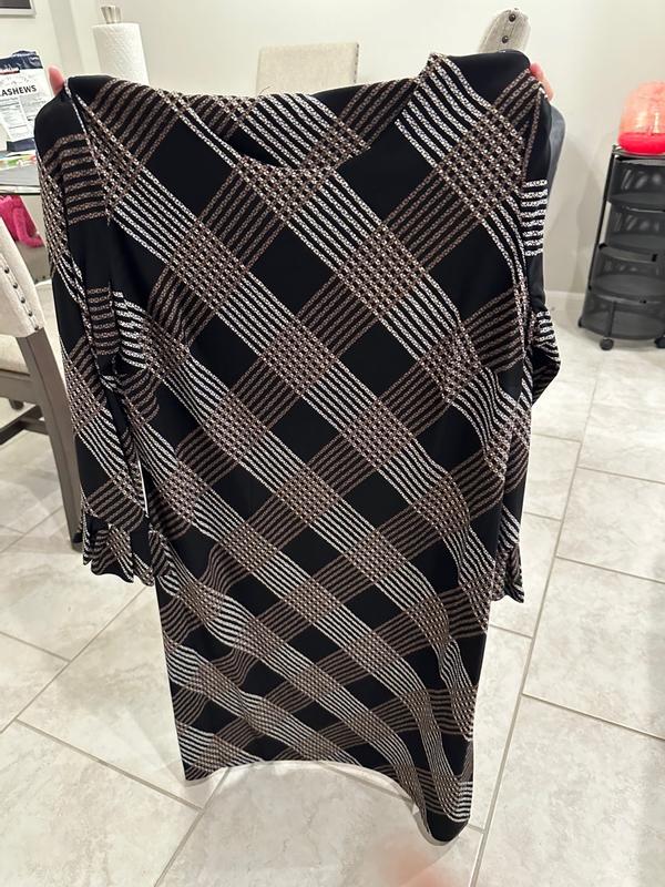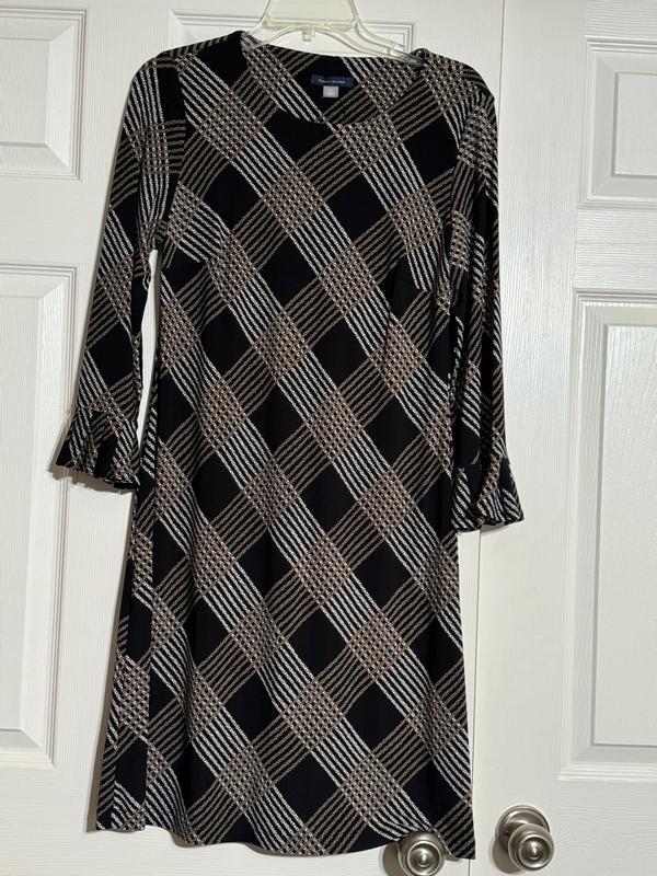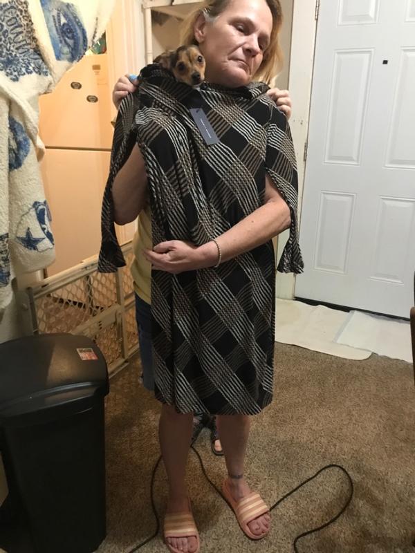 A great fit! I love how this feels and looks on me. I’m debating getting it tailored as I am pretty short, but i love the pattern and fit. This is great for work.