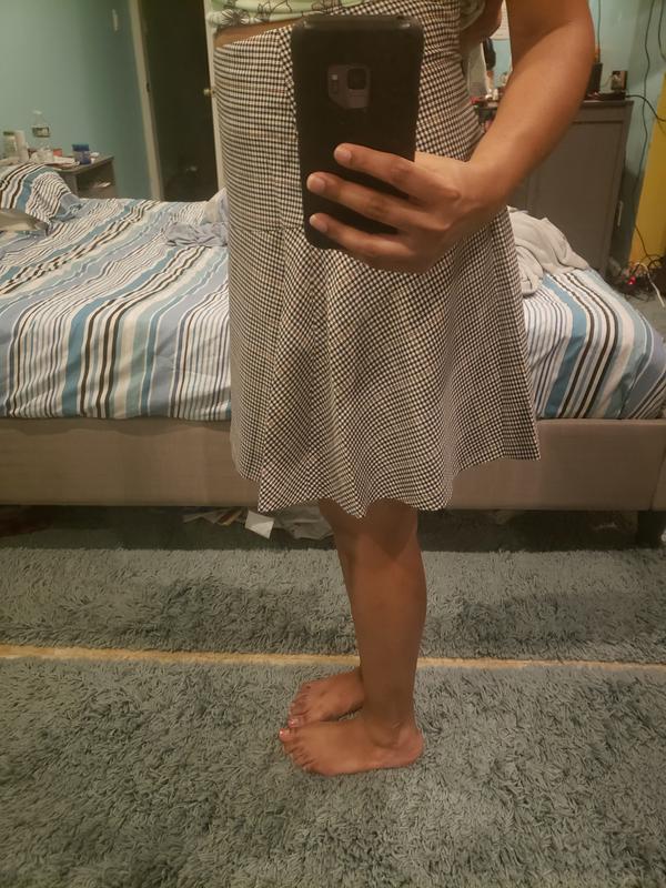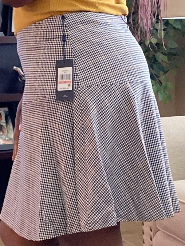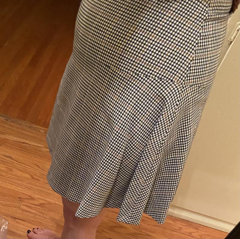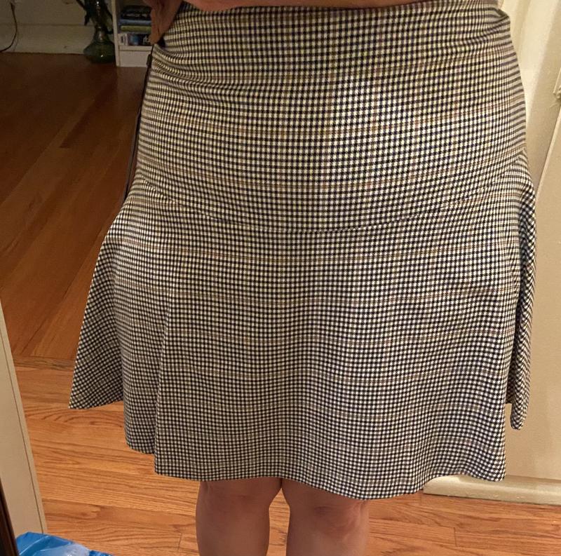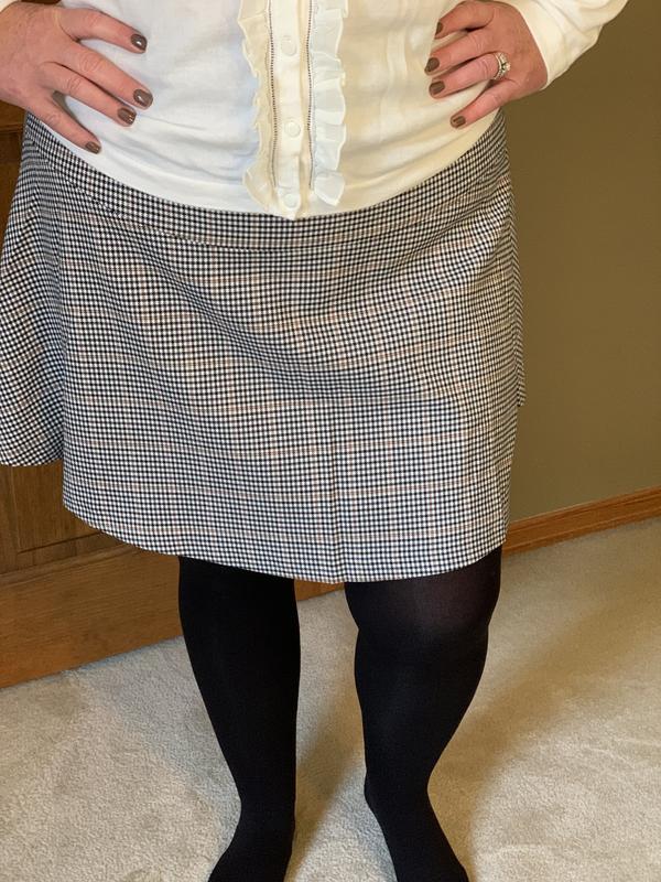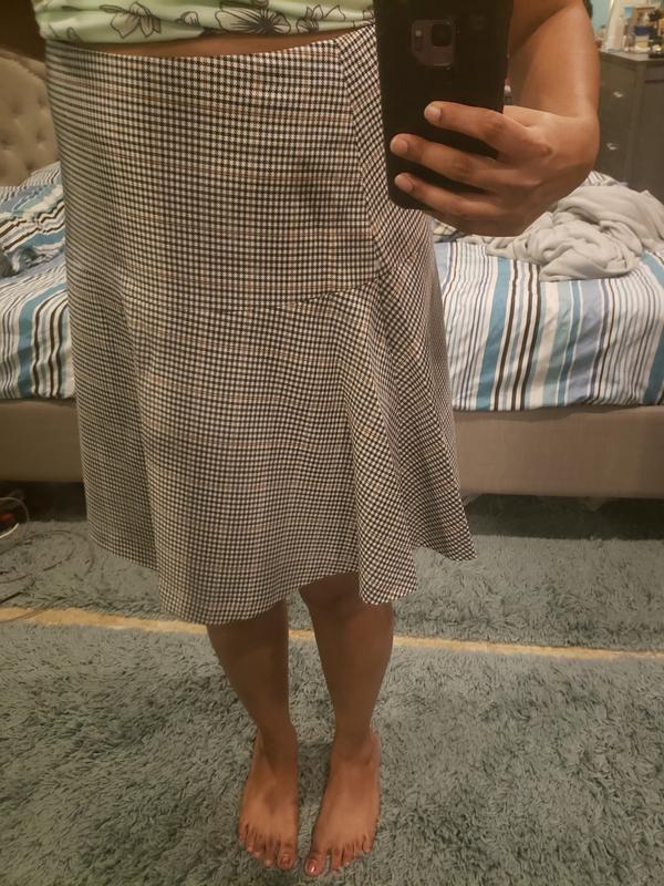 The quality of this skirt is amazing. It has a lining underneath so it looks better on. The color is beautiful and goes with a wide variety of blouses. However, I have an hourglass shape and it didn’t look that great on me due to the pleats on the skirt. It made my hips look bigger. Not the ideal cut for my body type. But a great skirt for the office.