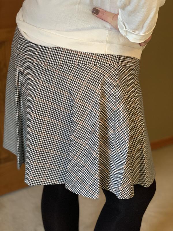 This skort is perfect for fall to pair with a brown or cream sweater. I typically order a large in skirts but went with an extra large and it fits great so I would size up for this skirt. Very well made and comfortable