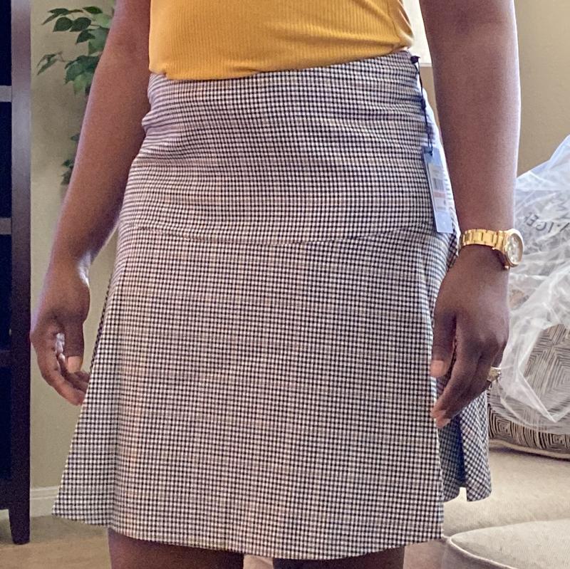 This skirt was very comfortable and can be worn to work, church, or cute day out. I normally wear a size 10, so I thought the 12 was going to way too big, but it fit just right. Not tight on my waist and was not loose wear I would have to make any adjustments. I have many tops in colors (black, mustard, cream) and styles that I can pair with skirt