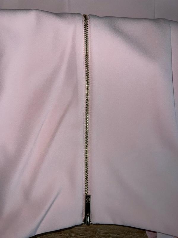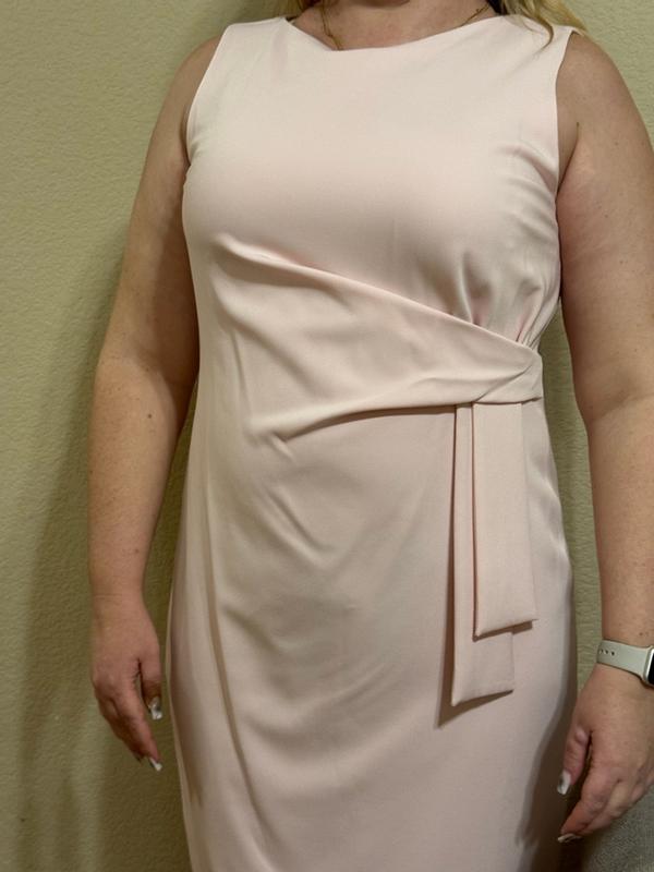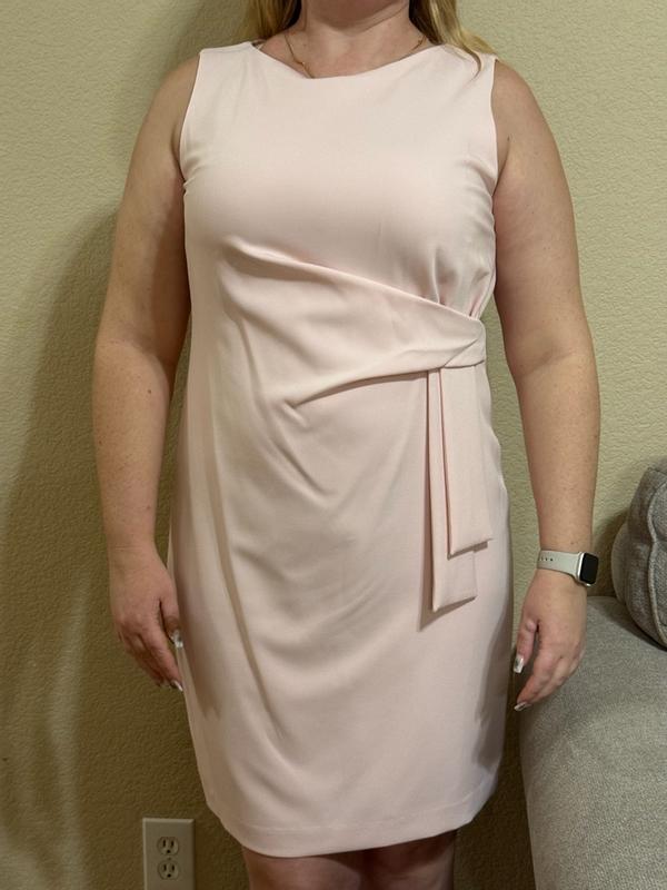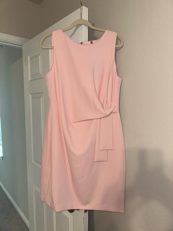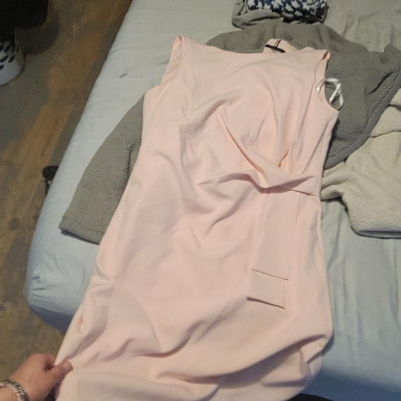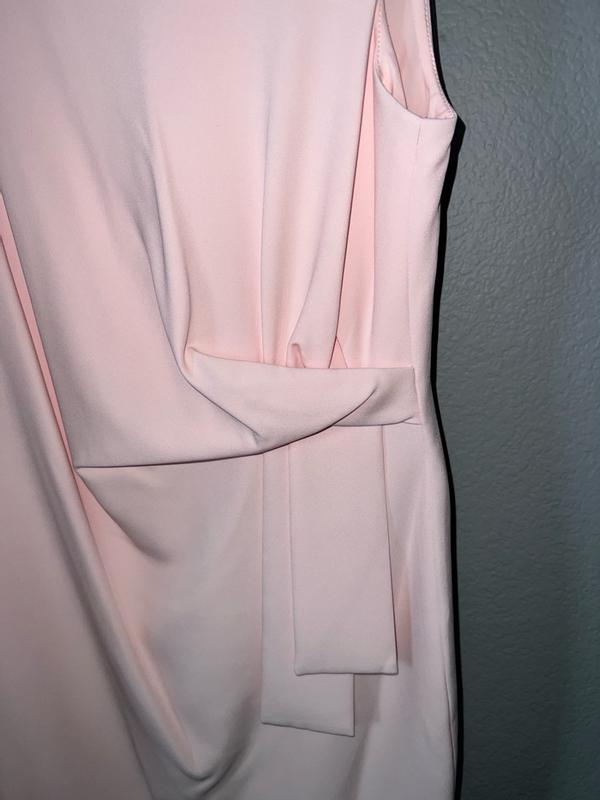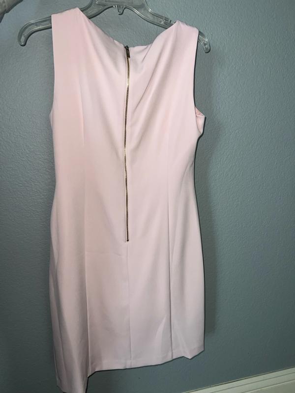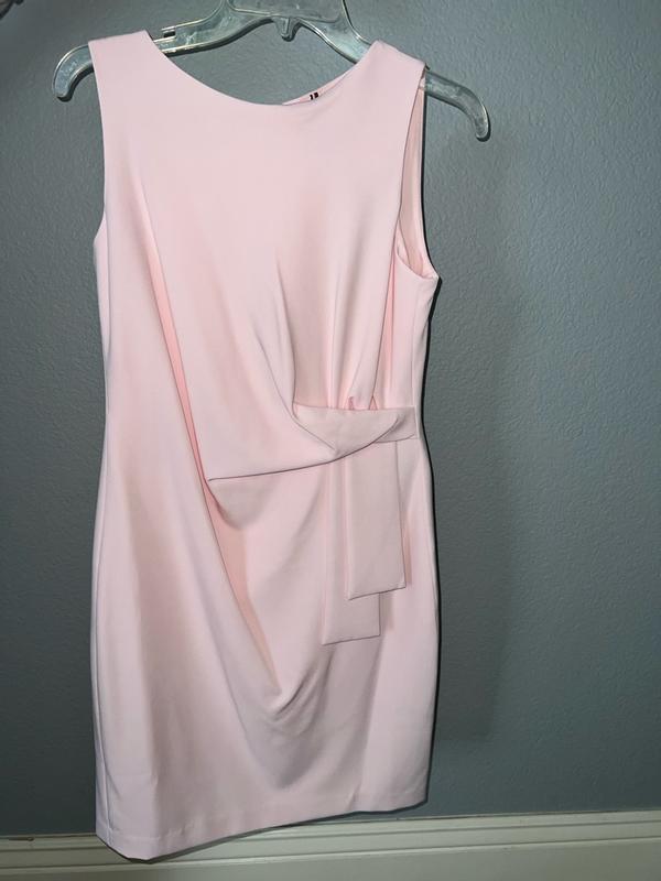 A simple design yet elegant, lovely, well-made dress with a shockingly low price tag. The shade of pink is perfect; subtle but definitely pink. I am 'mother of the groom' and this is exactly the type of dress I was hoping to find for his August wedding. It fits my 5'1" frame very well; a petite would have fit perfectly. Don't hesitate to buy this dress!