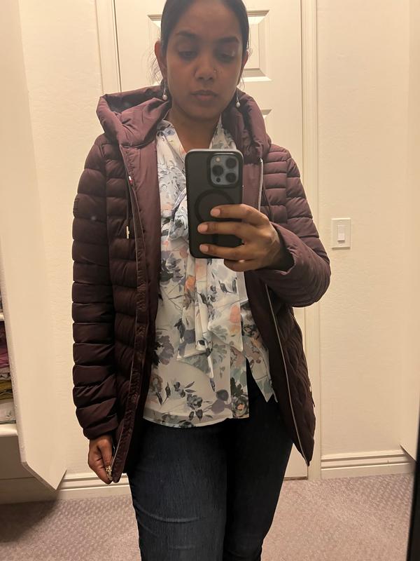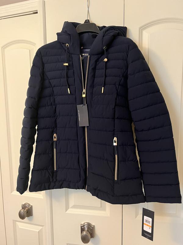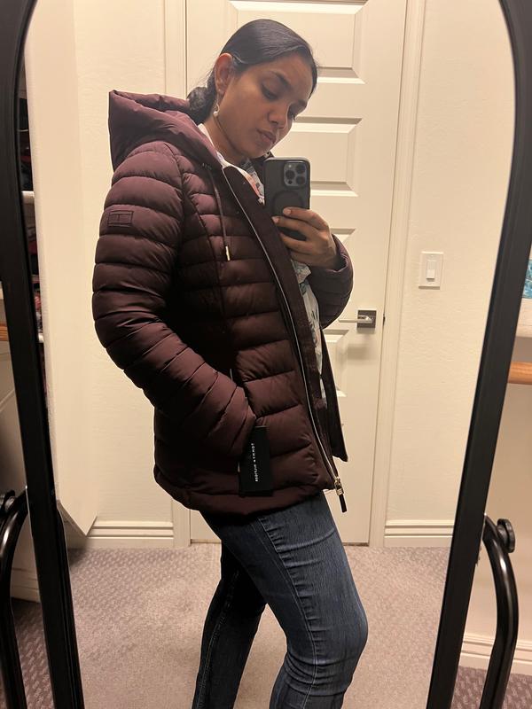 I love Tommy Hilfiger's Women's stretch hood packable puffer coat and it's awesome. The material is lightweight but covers you up from the cold. It's very comfortableand soft plus it fits just right. I can definitely wear this jacket in different styles and times of year. The coat is made with high-quality and durable. I would definitely recommend this product to other Tommy Hilfiger fans.