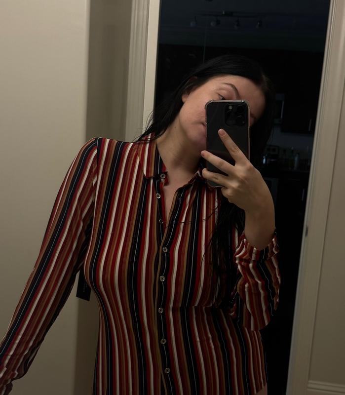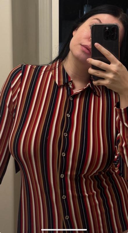 Super nice shirt. It comes in many fabric patterns which is ideal if you like this style. I now have 6 and they are all true to size, machine wash in cold water. Love !!!