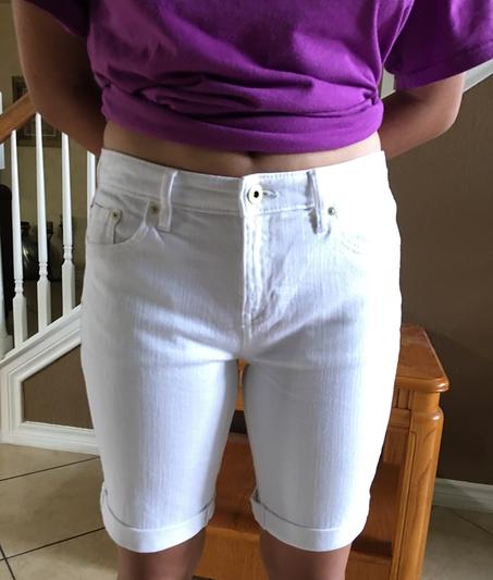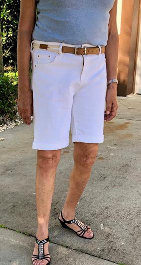 A prefect pair of Bermuda short for middle age women who are looking for a great fit, stetch, and not too short not to long. I love the medium wash. Just what I was looking for in a pair of shorts.