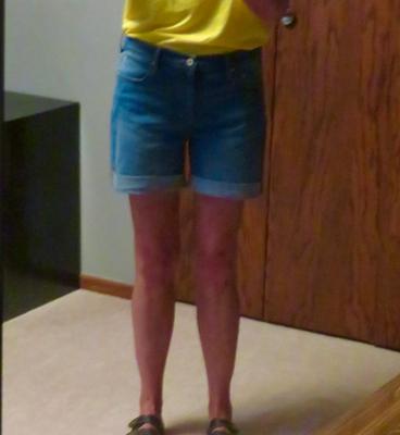 These are my absolute favorite shorts. Stretch denim so they are very comfortable. Not too long or short. I have about 10 pair of these. I am 5"5" and 220 and get a size 16. I also have a size 14 that fits me too.